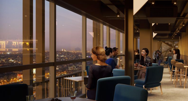 En effet, l’expérience client est au coeur du projet de la Brasserie Madame. Quand on y mange, on en profite autant avec la bouche qu’avec les yeux : tant le repas, que l’ambiance et que la vue de Paris sont clés pour les client.e.s du restaurant. Ainsi, en plus de l’ambiance cosy et haut de gamme, une diminution progressive de l’éclairage en salle s’effectue tout au long des services du soir, afin que les luminaires ne se reflètent pas dans les vitres et que la ville de Paris soit visible tout au long de la soirée. Cette gradation est par ailleurs réalisée tout en assurant un confort de dégustation aux client.e.s et un confort de travail au personnel de l’établissement.